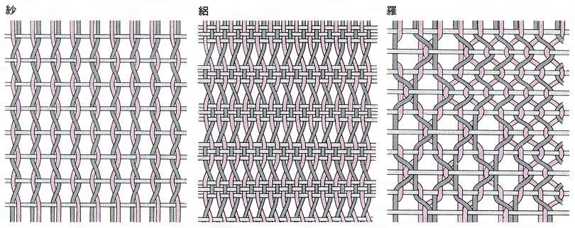 Japanese summer gauze silks are collectively called からみ織 or karamiori. There are three common types – sha, ro, and ra. They are used for summer wear.