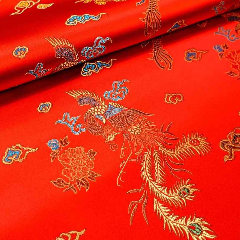 Kinran refers specifically to brocade patterns made with gold thread. It was brought over to Japan during the Song Dynasty by monks, and came to be used for items such as bags and scroll mountings. Records of production in Japan date back to 1567 domestically. Silk and cotton were both used, as well as a variety of weaving techniques, twill and plain.