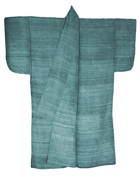 2 to 3 oz hemp, linen or ramie; if wearing without an undergarment or in a cold climate, bump up to 4 to 5 oz for modesty and comfort. Yellows and lighter indigos seem to be typical colors. Dye complexity varies from solid to simple shibori to complex shibori and stencil dyeing for upper classes.