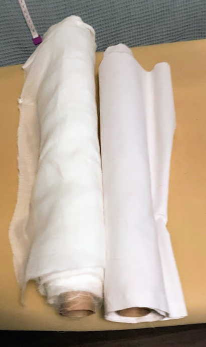 Iron the fabric and roll it tightly and evenly on to a wooden dowel, or any sturdy tube. In the beginning, I used two paper towel rolls taped together reinforced with another layer of paper taped around them. Eventually I bought a few 1 1/2″ dowels from the hardware store. An old broom or tool handle also works. I like to roll the fabric as I iron it to keep it really flat.