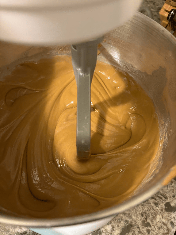 - When the donuts are done, immediately pound them into a paste. This is traditionally done with a large suribachi, but you can also use a bread mixer. Do not use a cake mixer, the dough is too tough for the motor.