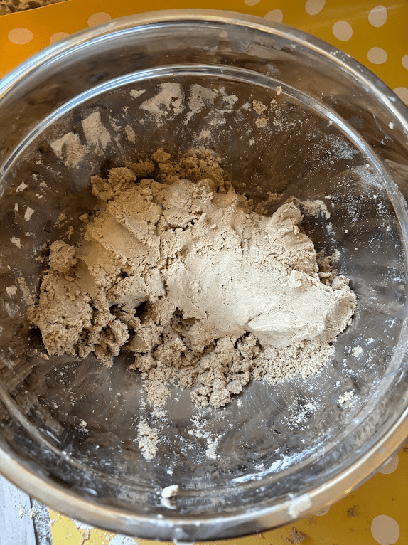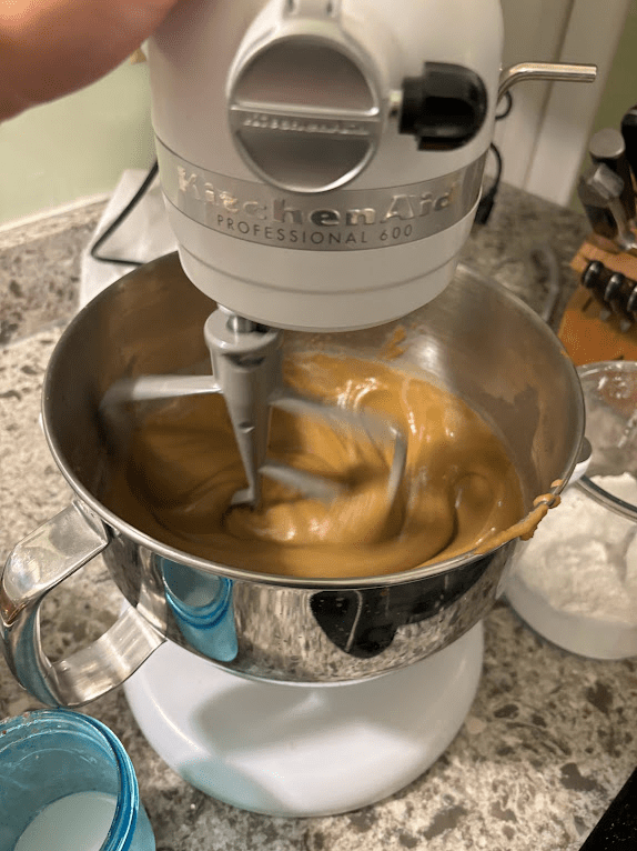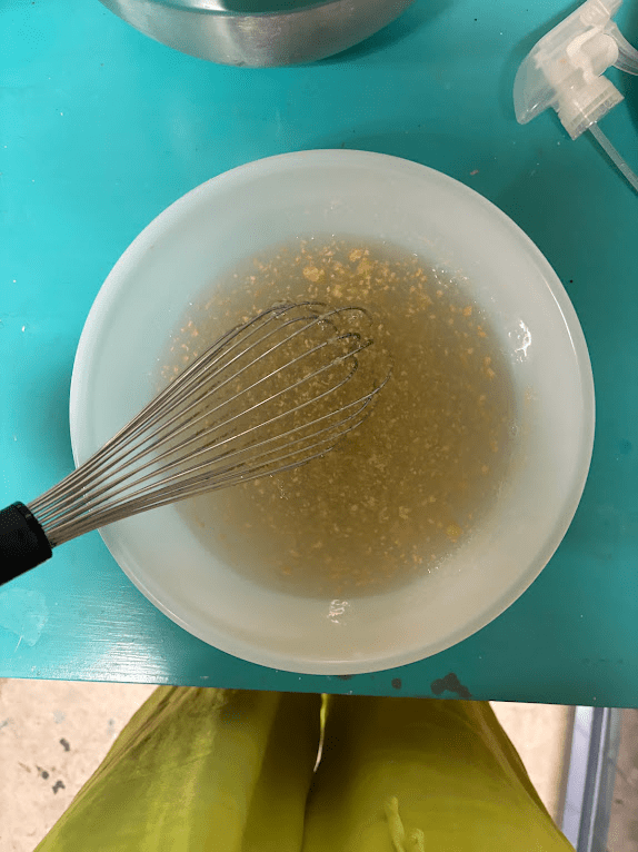 - Add top water from the lime solution until the dough turns a golden dijion yellow. I usually set a piece of paste aside out of the mixing bowl so I can compare the color change. You don’t want a bright yellow, but more the color of like, undyed french mustard.