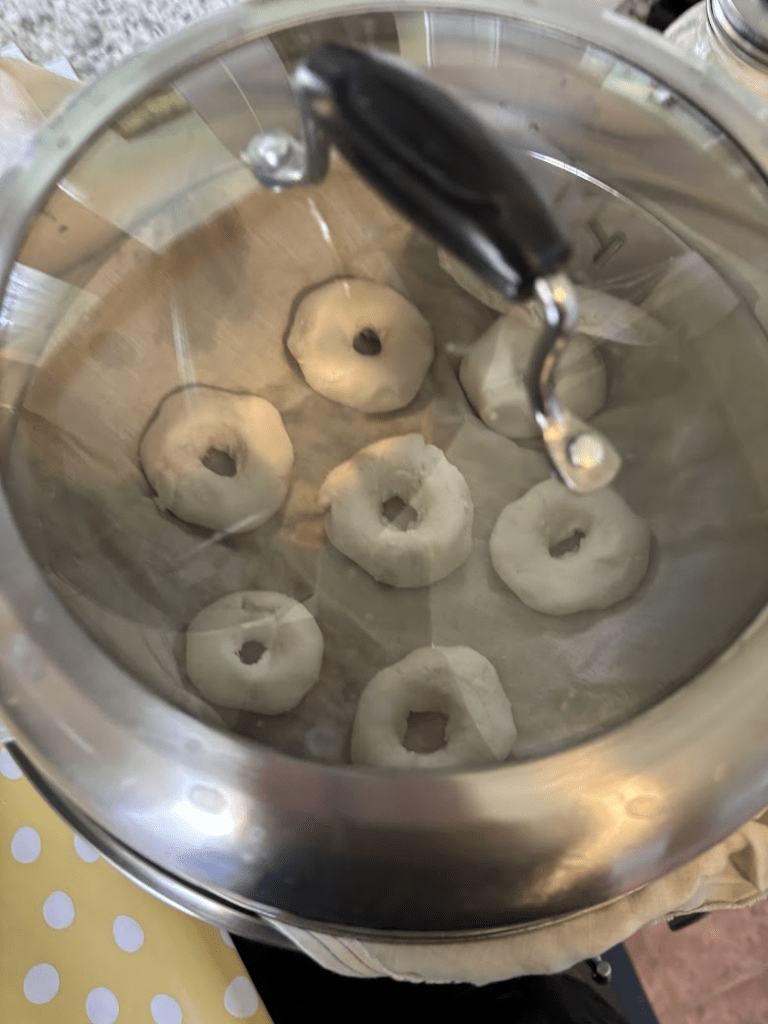 - Set the doughnuts in a kitchen towel or piece of cotton muslin (preferable white or unbleached), spacing them so they do not touch, and steam 50-60 minutes.
