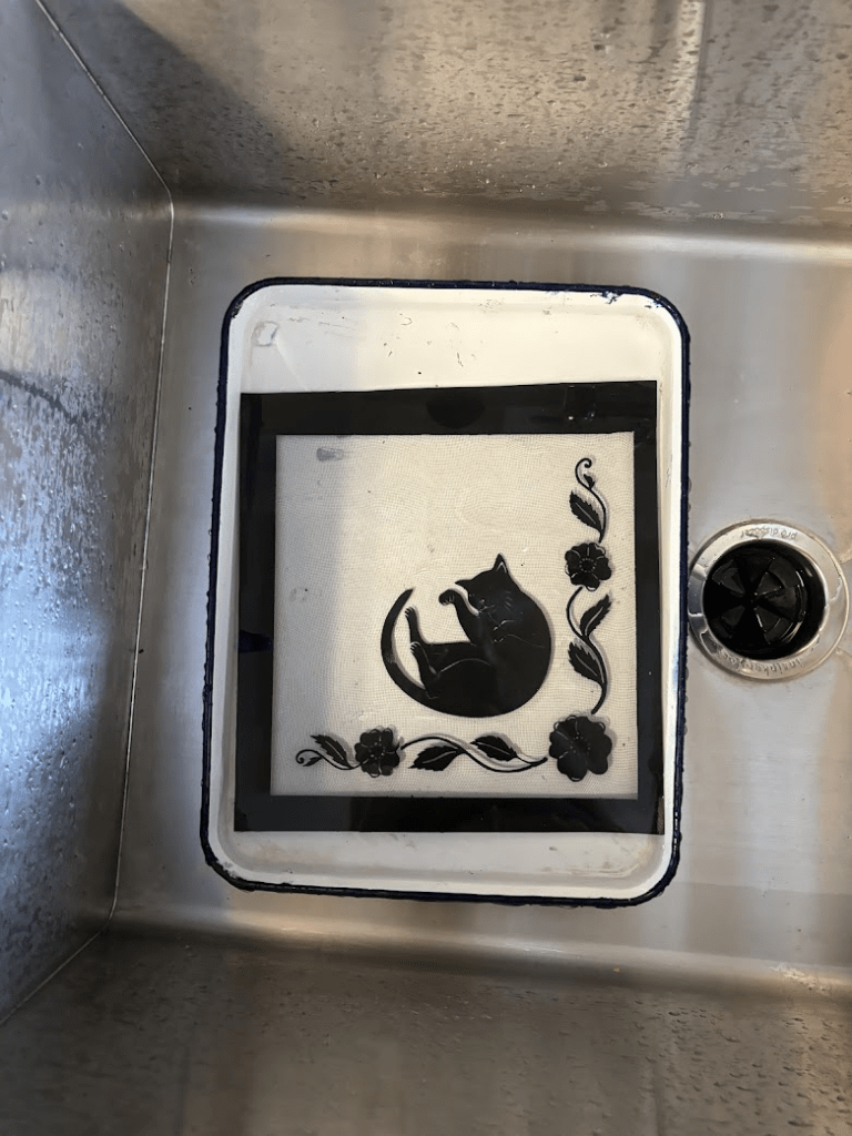 If you don’t have this setup, pretty much any configuration of two sheets of plastic will do. Before I made my soaking press out of thick acrylic and plywood, I often used two plastic mortar pans stacked together with a weight on top. If the stencil was small, I used two enamel art pans.