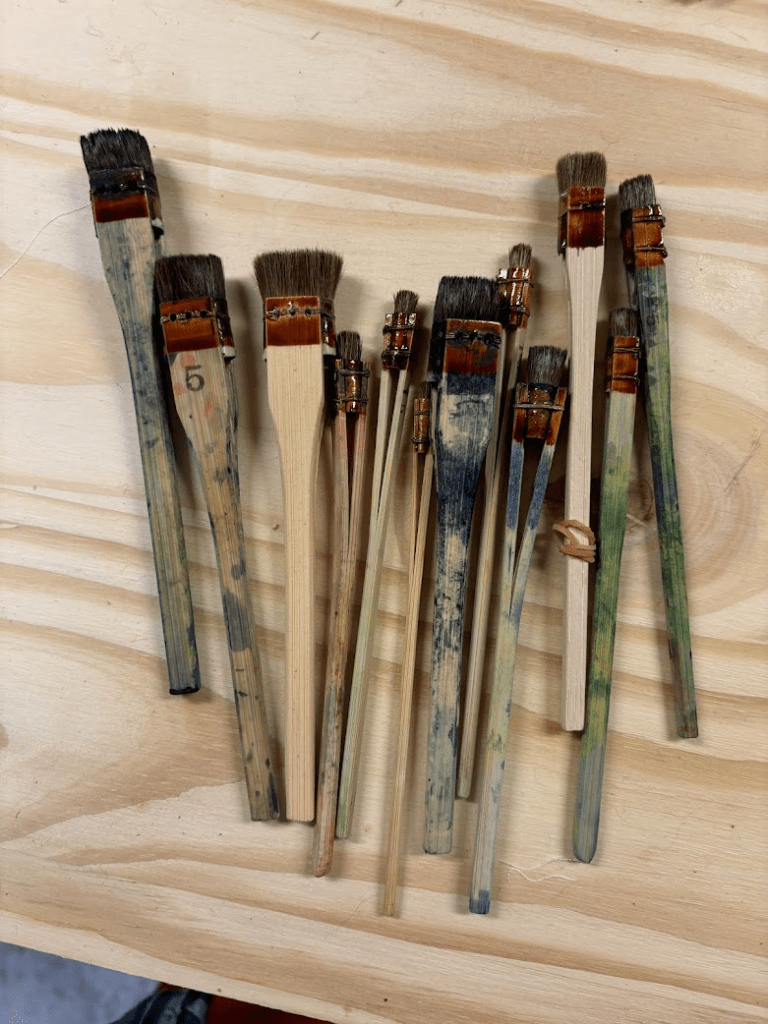 The quality of the brush matters more at the dye stage than the sizing or mordanting stage, so put your investments into dye brushes first.