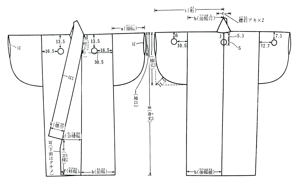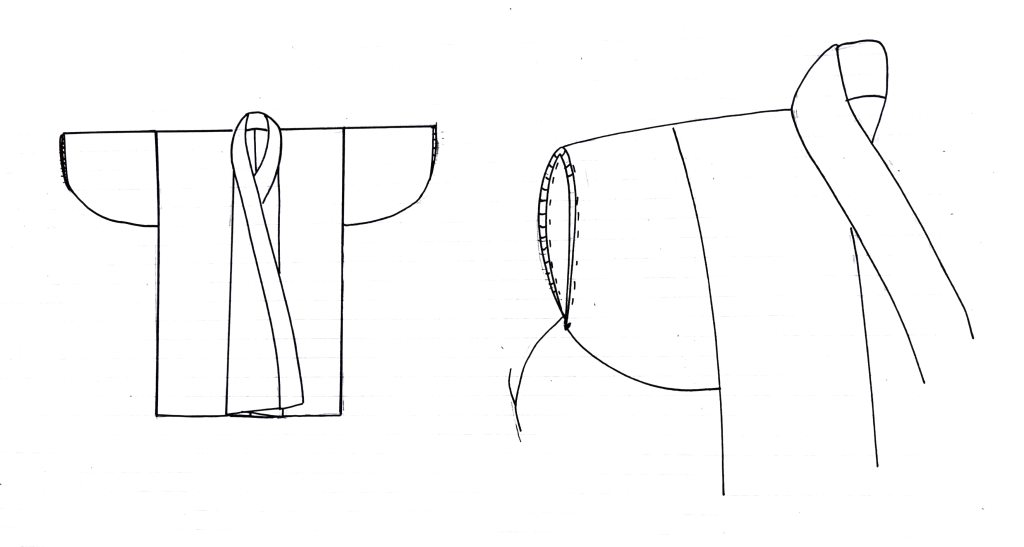 Underlayers go by many names, but I’m referring specifically to the first layer that touches the skin – asetori or 汗取り, and the first kosode that goes over top of it, which is modernly called a juban or hadagi. I have also seen hadakosode in some books.